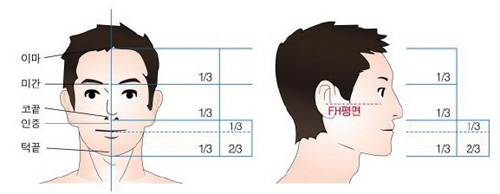 최근에는 턱이 약간 짧은 1:1:0.8 비율을 동안얼굴이라 하여 선호하기도 하지만 기능적인 측면에서 볼 때 1:1:1의 비율이 가장 이상적이라는 것.