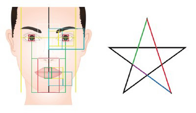 유명한 그리스 아테네의 파르테논 신전, 밀러의 비너스상, 레오나르도 다빈치의 모나리자얼굴 등의 비율이 1대1.6의 비율이다. 눈, 코, 입이 이 1대1.6 비율에 위치해 있으면 가장 아름다운 얼굴이 된다는 것이다.